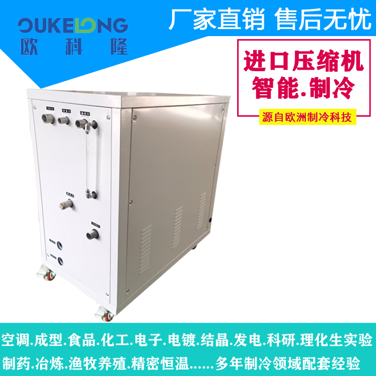 適用場景廣泛,可用于理化生實驗室、高校、電子、電鍍、食品等行業(yè)。歐科隆還提供整機免費保修一年、終身售后服務(wù),配送方式有工廠送貨上門和物流送貨上門,交期方面,有庫存配件1 - 3日即可交貨。歐科隆3匹水冷箱式冷水機組以其卓越性能和優(yōu)質(zhì)服務(wù),為各行業(yè)的制冷需求提供可靠保障。
