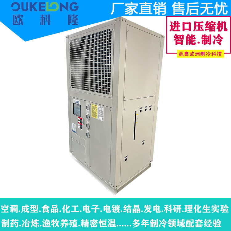 歐科隆自主研發(fā)設(shè)計(jì)實(shí)驗(yàn)室高低溫沖擊冷水機(jī)專(zhuān)為極端溫度測(cè)試設(shè)計(jì),具有快速溫變、精準(zhǔn)控溫、高可靠性等特點(diǎn)。其溫區(qū)覆蓋-70°C至+150°C,升降溫速率可達(dá)5~30°C/min,滿足芯片、電池、材料等溫度沖擊測(cè)試需求(如JESD22、MIL-STD標(biāo)準(zhǔn))。采用雙循環(huán)制冷系統(tǒng)和高效換熱技術(shù),確保溫度穩(wěn)定性(±0.5°C)。