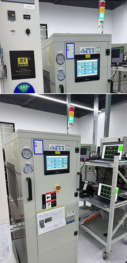 本方案為重點物理實驗室老化測試用液冷機,配套高低溫環境試驗箱測試產品的耐久性和耐高低溫沖擊穩定性。