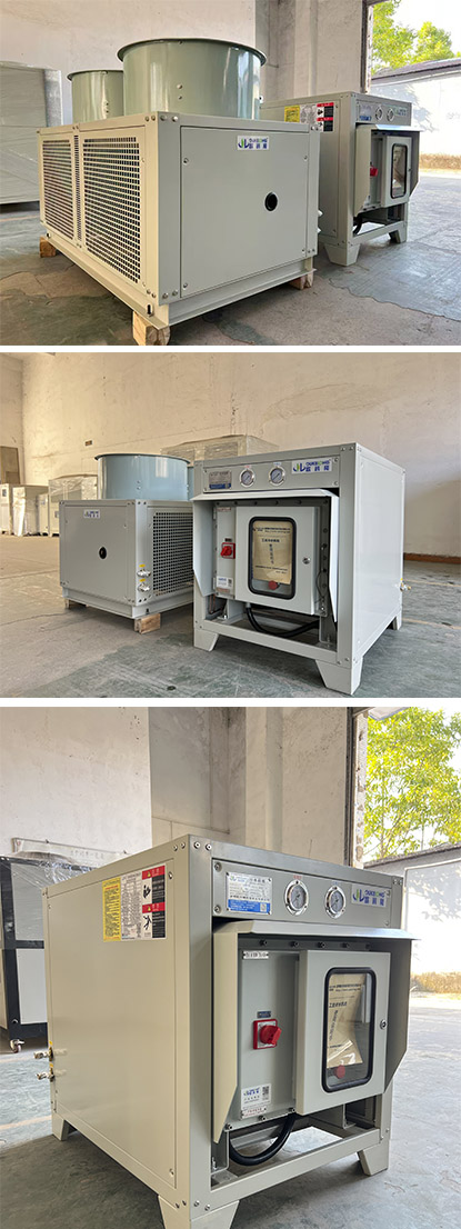 本案位于東北某知名國企應用的分體式防爆冷水機,由于技術涉密不能透漏工藝細節。但使用場景需要把外機放置在室外進行冷凝散熱,制冷主機和控制器在車間。使用場所有嚴重的腐蝕性和極強的易燃易爆危險。該企業仔細對我公司進行審核最終在眾多企業中選擇我們,并達成合作共識。